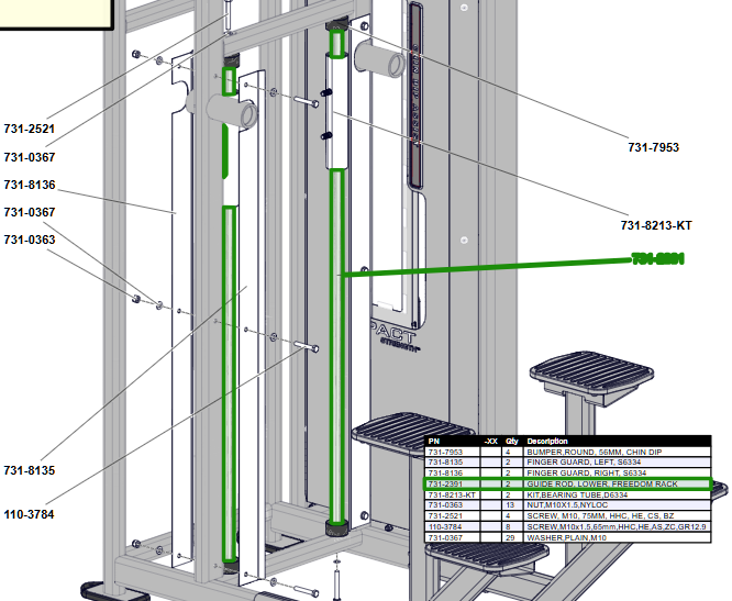 731-2391 GUIDE ROD, LOWER, FREEDOM RACK