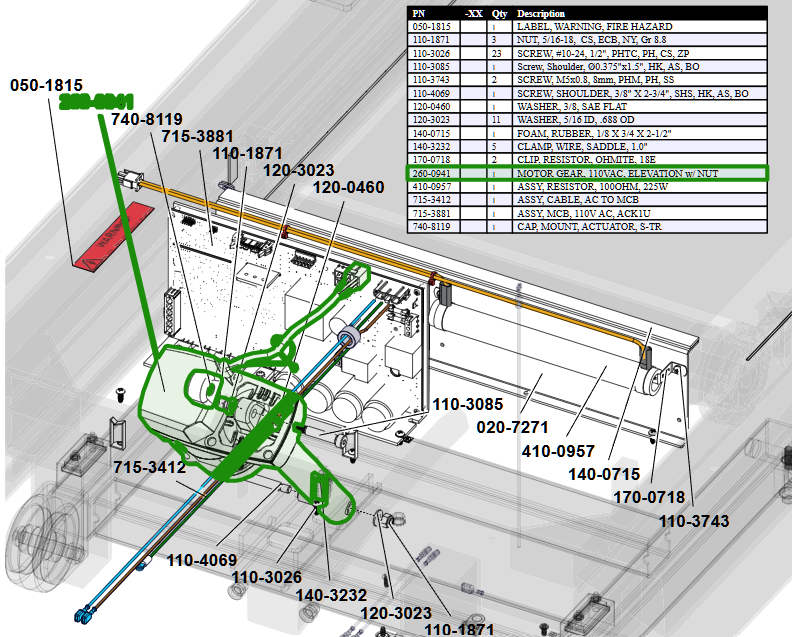 260-0966 ASSY, ELEV, MTR, 110V, DECK, FLEX
