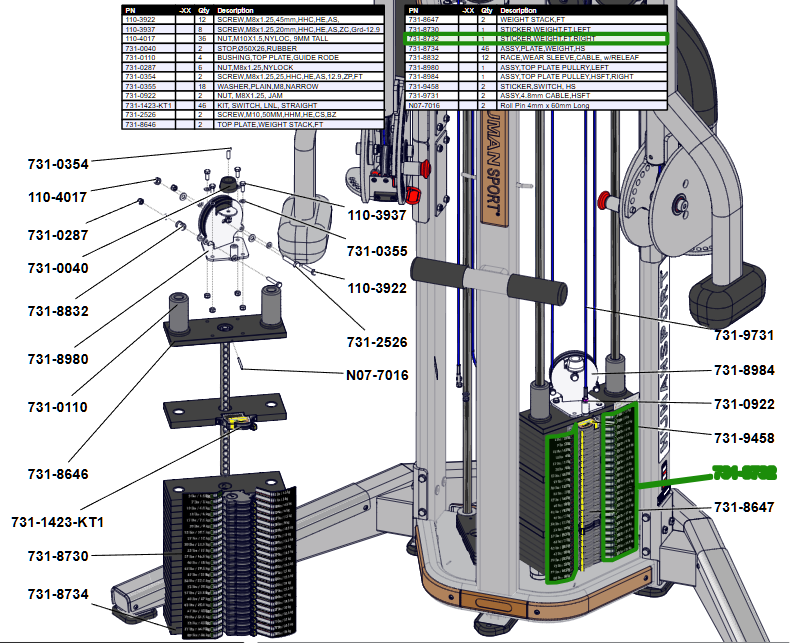 731-9731-KT ASSY, 3.8mm CABLE,HSFT
